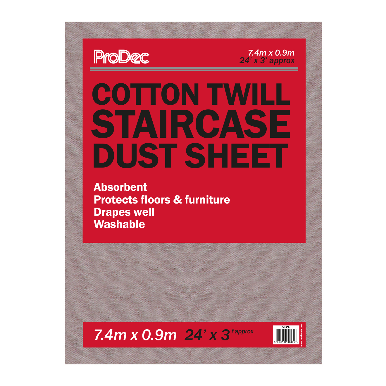Regular cleaning and maintenance can extend the life of ProDec cotton dust sheets. Standard twill sheets are machine washable so are easily cleaned. Poly/plastic backed sheets are not machine washable but can be easily cleaned with a damp cloth.