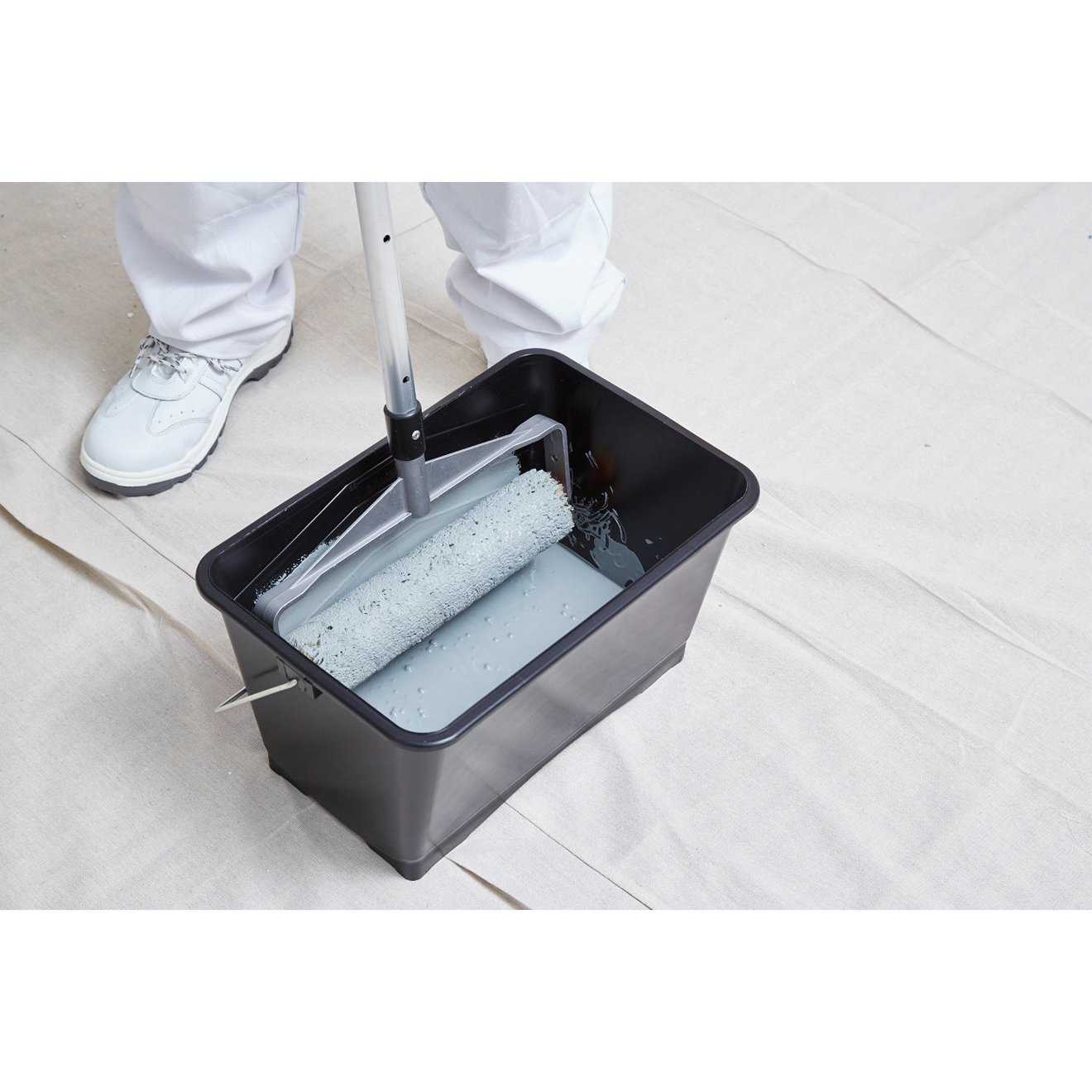 Microfibre – the softest fabric that has a very light touch in the paint film and gives an excellent finish. Because it’s soft it’s suitable for internal smooth walls only: never use microfibre on rough surfaces, as it will break down. It’s a very versatile fabric that can be used for gloss, satin and other trim paints with a short pile and emulsion and woodstains with a medium pile.