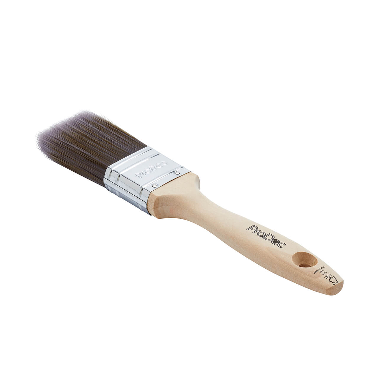 Paintbrush Shape: Flat brushes are versatile and good for large surfaces, while angled brushes are ideal for cutting in and detail work. Oval brushes are ideal for moulded trim surfaces such as architrave and skirting board.