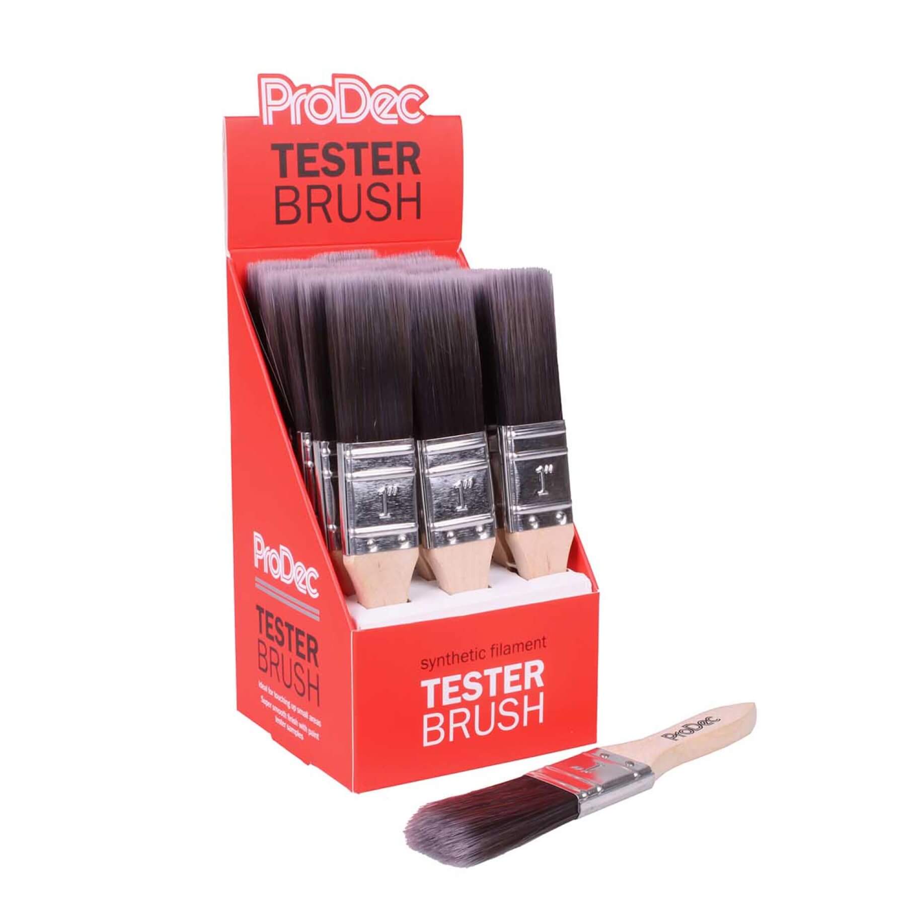 ProDec Tester brushes are ideal for the smooth application of all types of paint, varnish and stain when testing colour swatches on walls, woodwork and other surfaces. Manufactured using high-quality synthetic filaments and with a lightweight wooden handle that enables control and precision, the brushes deliver a super-smooth finish, making them also suited to touching up and fine detail work.