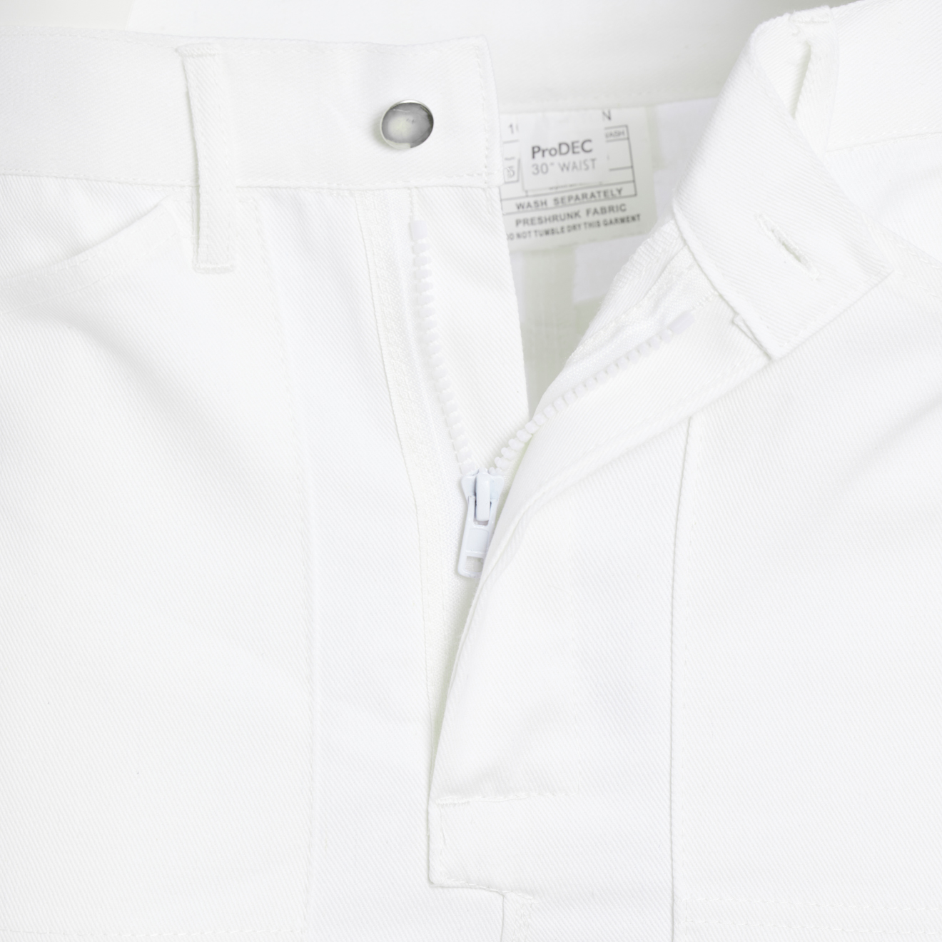 Painter's trousers made from pre-shrunk absorbent cotton drill fabric