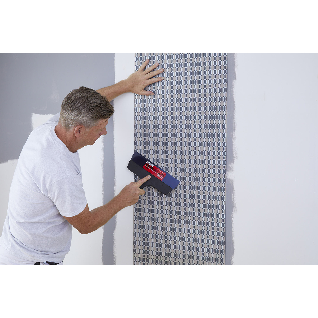 This vinyl smoother helps to press wallpaper onto the surface and ease it into place, smoothing papers out to eliminate creases. Suitable for most wallcoverings and particularly good with thicker or heavier papers, the flexible sprung steel blade is hard enough to eliminate bubbling for the optimum adhesion to the wall and flexible enough not to tear the paper. Feraturing soft grip handle for comfortable working, it's also useful as a straight edge for cutting papers with a sharp knife, giving an accurate, true cut against ceilings, coving, skirting boards and dado rails. It comes with a blade protector to store the product safely and prevent damage to the edge.